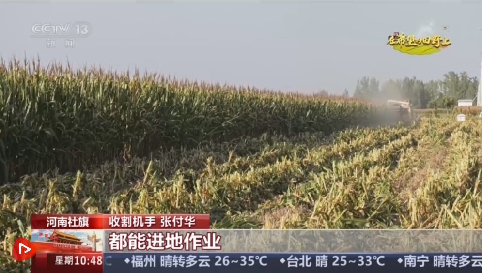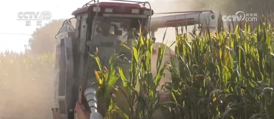 在南阳社旗县大冯营镇张腰庄村的一处玉米地,收割机正穿梭忙碌,履带碾过湿润的田垄,玉米棒被快速收割、脱粒,顺着传送带落入车斗,空气中弥漫着清甜的玉米香。而在大冯营镇韩营村,3台履带式收割机一字排开,饱满的玉米粒通过输送筒源源不断地“流”入等候的运输车内。