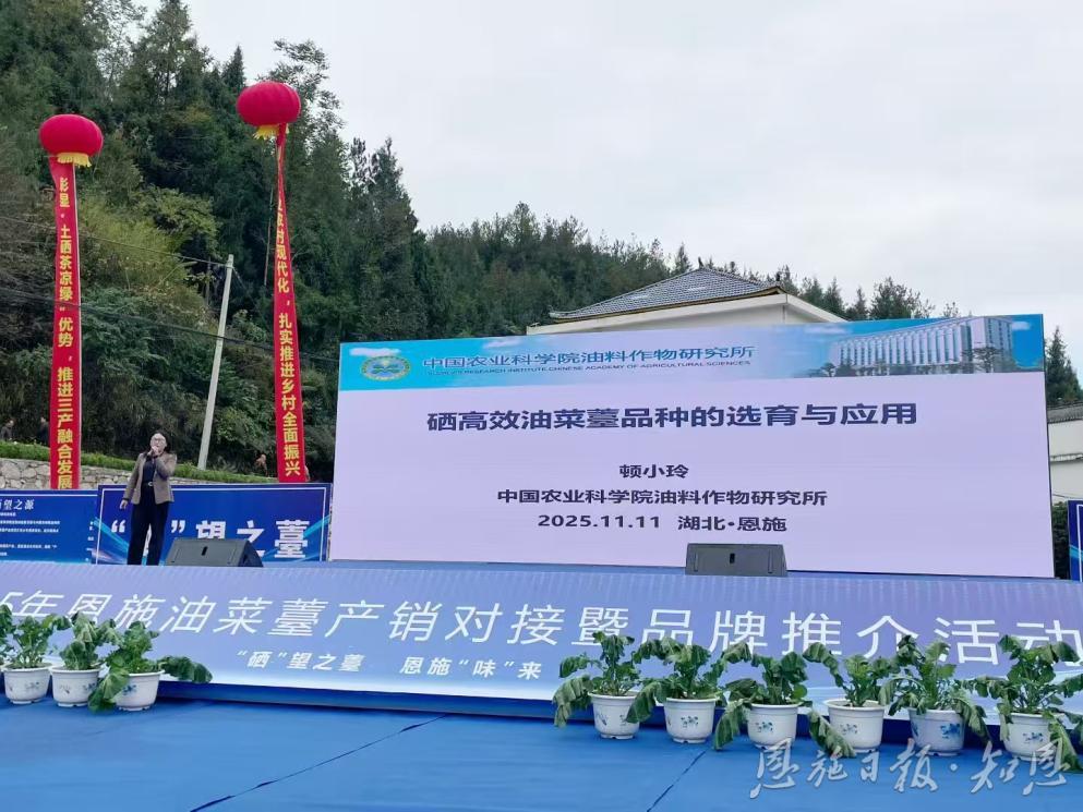 会议期间,与会人员参与了2025年恩施油菜薹产销对接暨品牌推介活动,实地观摩恩施市崔家坝镇斑竹园村“硒滋圆”富硒油菜薹标准化出产场景,走进当地油菜薹加工公司,细心地了解富硒油菜工业链交融开展形式与品牌建造经历,推进项目技能效果落地转化。